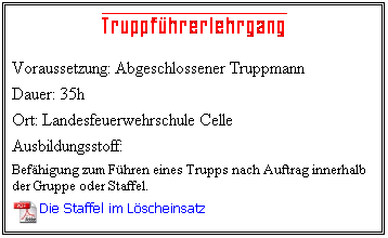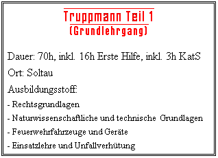 Die Truppmannausbildung schließt mit einer schriftlichen Prüfung auf der Ebene des Grundausbildungslehrgangs ab.